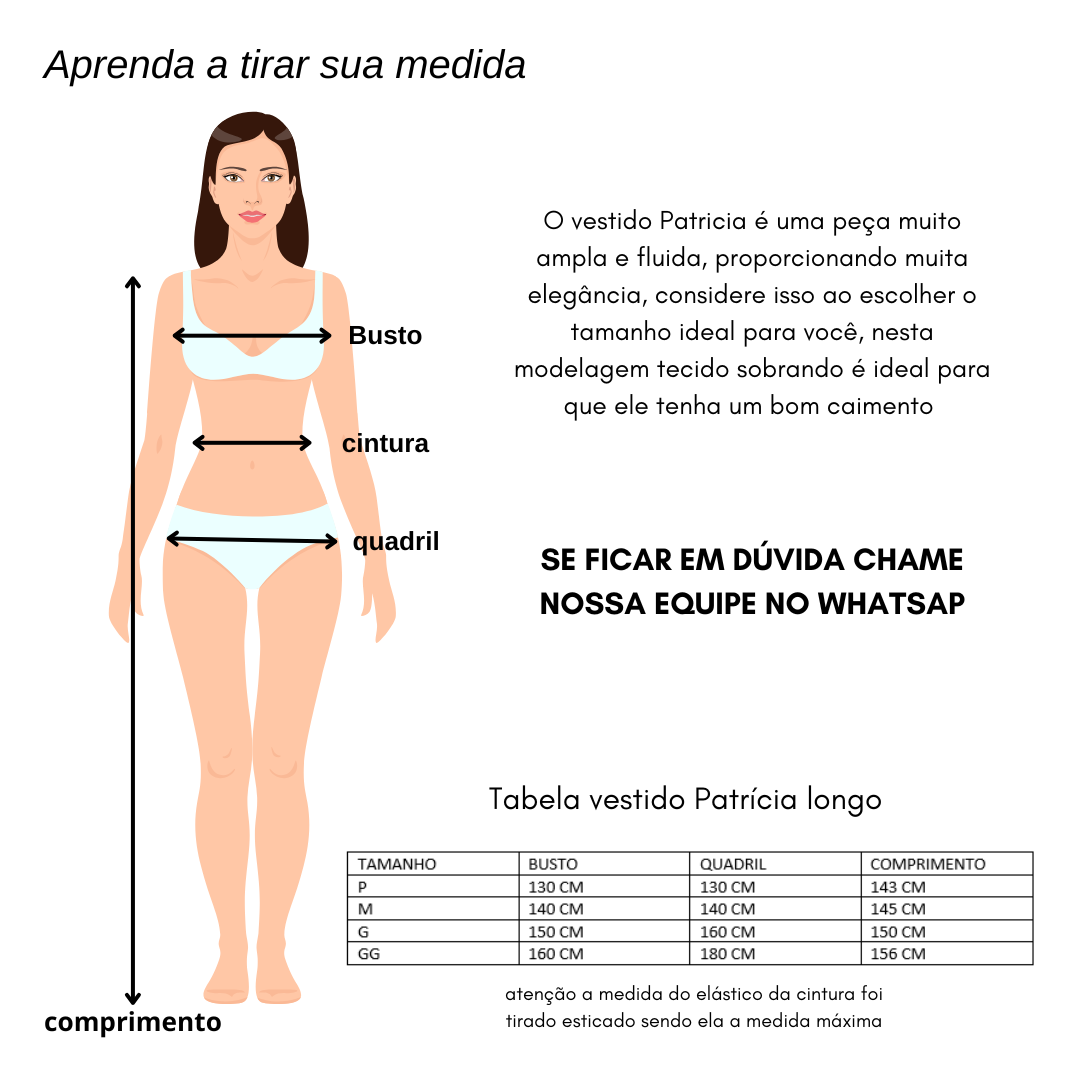 Tabela de tamanhos: P (36-40) | M (42-46) | G (48-50) | GG (52-54)